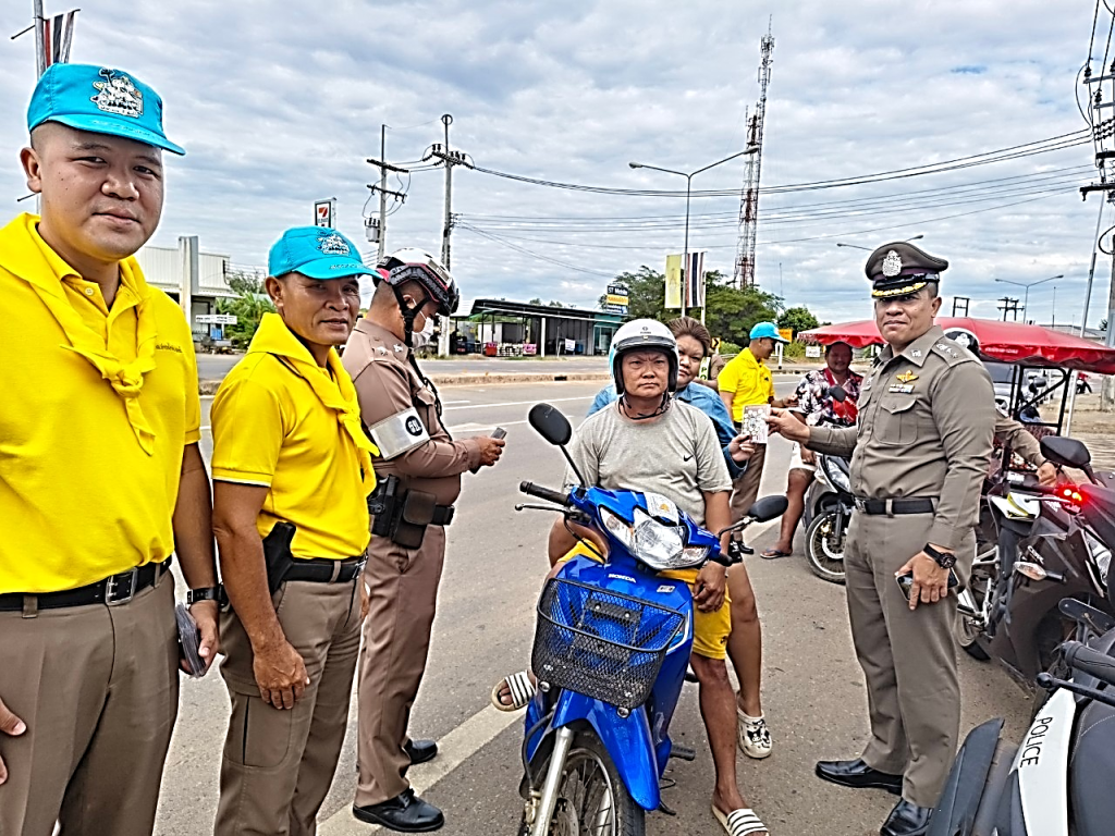 4. จิตอาสาจราจร สภ.ปากน้ำประแสร์ ได้ประชาสัมพันธ์ นำความรู้ เรื่องกฎจราจร การใช้รถใช้ถนนที่ถูกต้อง อธิบายลักษณะหมวกนิรภัยที่ได้