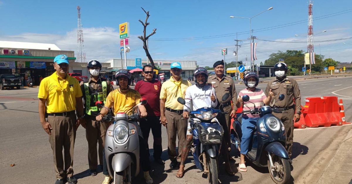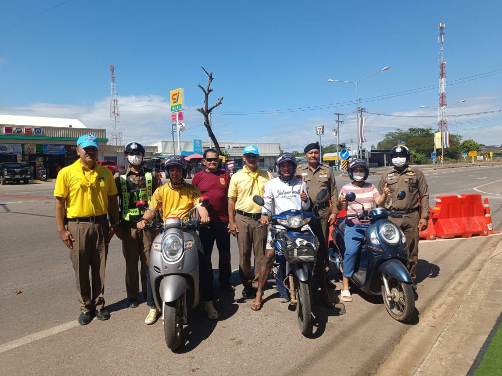 ร่วมรณรงค์การขับขี่ปลอดภัย สวมหมวกนิรภัยเพื่อลดอุบัติเหตุจราจรทางบกในช่วงเทศกาลปีใหม่ให้แกประชาชน ในพื้นที่ ณ ศูนย์บริการนักท่องเที่ยว บริเวณหน้าวัดตะเคียนงาม ต.ปากน้ำกระแส อ.แกลง จ.ระยอง