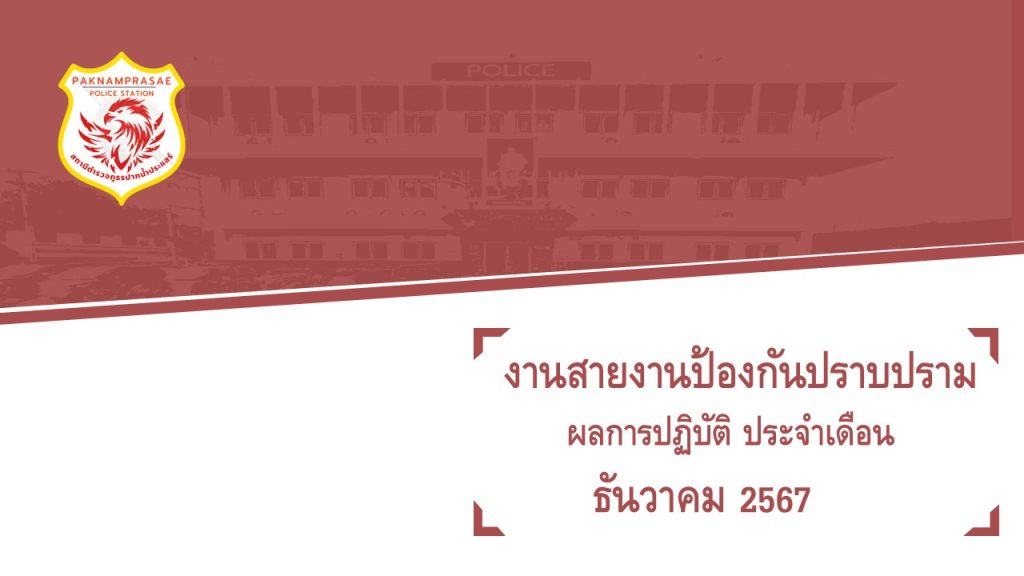 ผลการปฏิบัติงานสายงานป้องกันปราบปราม เดือน ธันวาคม 2567