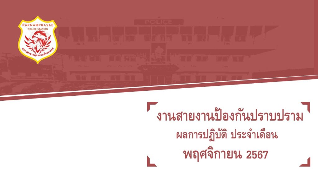 ผลการปฏิบัติงานสายงานป้องกันปราบปราม เดือน พฤศจิกายน 2567