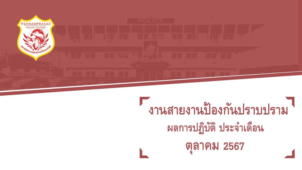 ผลการปฏิบัติงานสายงานป้องกันปราบปราม เดือน ตุลาคม 2567