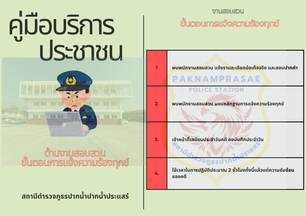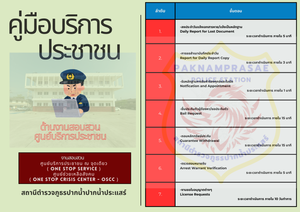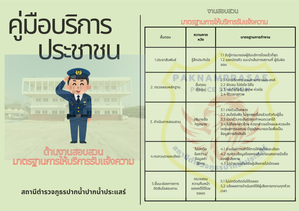 คู่มือประชาชน(ฉบับย่อ) แยกตามสายงานที่มาติดต่อสถานีตำรวจ